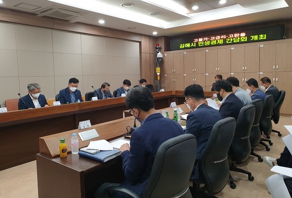 경남 김해시는 29일 시청 행복민원청사 1층 365안전센터 회의실에서 고물가·고금리·고환율 3고(高) 악재로부터 민생경제 충격 최소화를 위해 유관기관·단체들과 민생경제대책 긴급 간담회를 가졌다.