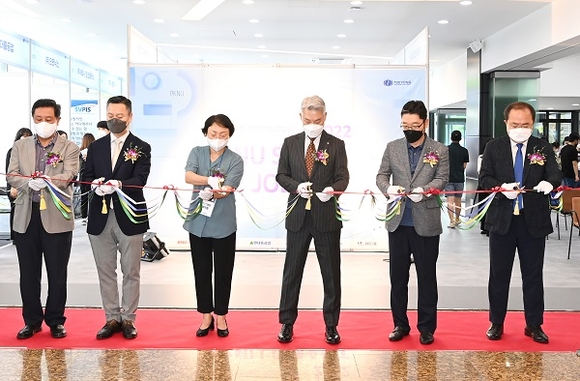 30일 부경대 동원장보고관 1층에서 열린 ‘2022 PKNU SMART & IT JOB FAIR’ 개회식에서 테이프 커팅을 하고 있다. (사진=부경대 제공)