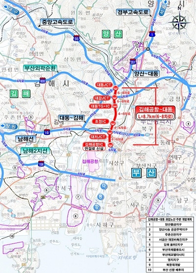 이번 중앙고속도로인 김해공항IC-대동JCT간 고속도로 확장사업은 경남 김해시 대동면에서 부산 강서구 대저동 일원까지 사업비 3261억 원을 투입해 8.7㎞ 왕복 4~6차로를 6~8차로로 확장하는 사업이다.