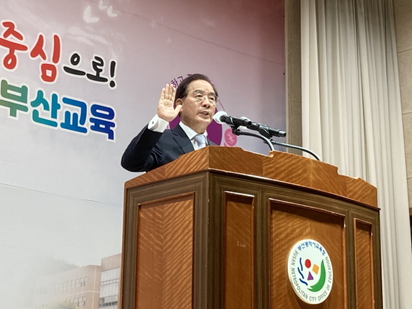 하 교육감은 "부산은 항만물류산업의 중심이자 세계적 관광도시, 세계의 관문으로 성장하기 위한 기로에 서 있다"며 "우리 부산교육이 영광스러운 부산의 발전과 미래를 이끄는 견인차 역할을 해야 한다"고 말했다.
