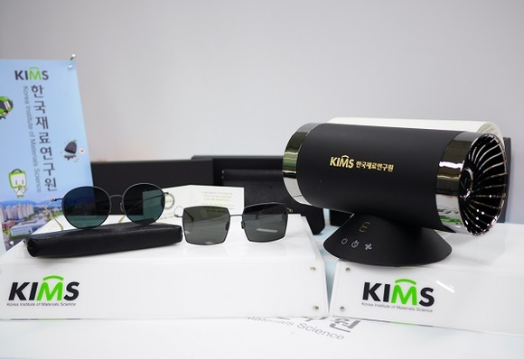 한국재료연구원 기술을 적용한 고특성 타이타늄 소재 선글라스와 저온 플라즈마 항균/항바이러스 공기청정기 제품. (사진=재료연구원 제공)