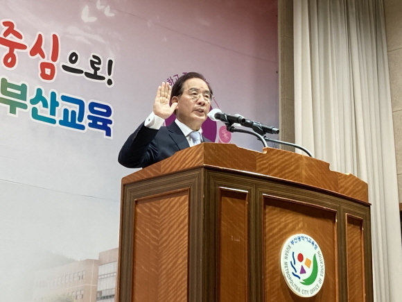 하윤수 부산시교육감은 지난 1일 취임식을 개최했다. 이날 취임식은 시교육청 총무과와 교육감직인수위원회가 공동으로 기획했다.