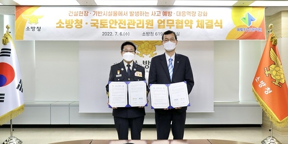 국토안전관리원과 소방청은 6일 세종시 소방청 청사에서 재난사고 예방·대응 협력을 위한 업무협약을 체결했다고 밝혔다.