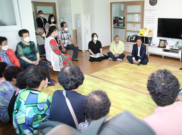 정 군수는 8일 관내 경로당을 방문해 장마철과 이른 무더위에 취약한 어르신들의 안전을 살피고 민원사항 등을 경청했다.