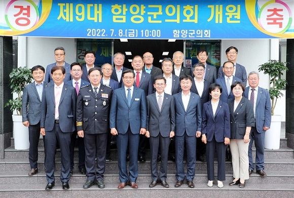 함양군의회는 8일 오전 본회의장에서 전의원을 비롯한 기관단체장, 전직의장, 군수 및 군 간부 공무원, 가족 등 100여명이 참석한 가운데 제9대 함양군의회 개원식을 가졌다.