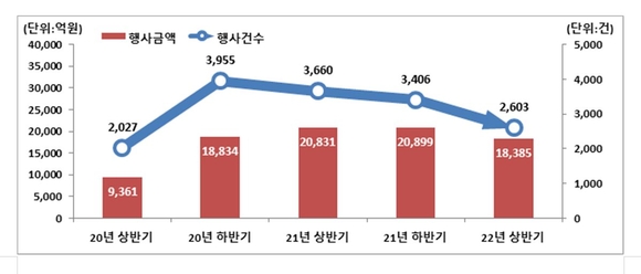 한국예탁결제원은 2022년 상반기 주식관련사채의 행사건수는 2603건으로 직전 반기 대비 23.6% 감소했고, 행사금액은 1조 8385억원으로 직전 반기 대비 12.0% 감소했다고 11일 밝혔다.