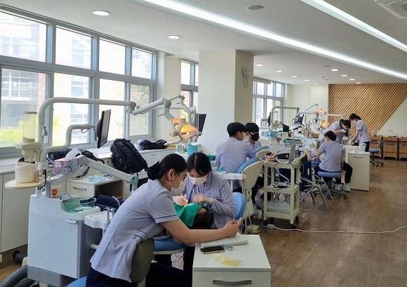 신라대학교 치위생학과 학생들이 실무교육을 받고 있다. (사진=신라대 제공)