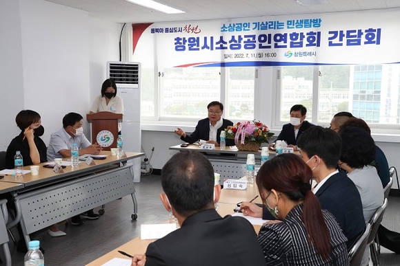 경남 창원시는 지난 11일 창원시소상공인연합회 사무실에서 민선 8기 출범 이후 첫 소상공인과 상견례 겸 간담회를 가졌다고 12일 밝혔다.