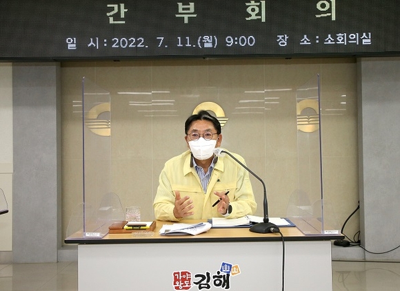 홍태용 김해시장이 취임 후 첫 간부회의에서 시민과의 소통을 강조했다.