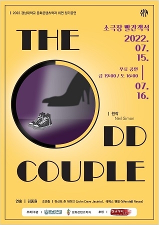 경남대학교 문화콘텐츠학과 공연예술 동아리 ‘취연’은 오는 15일부터 16일까지 이틀간 마산 합포구 오동동에 있는 소극장 ‘빨간객석’에서 닐 사이먼의 ‘The Odd Couple’ 정기공연을 가진다.