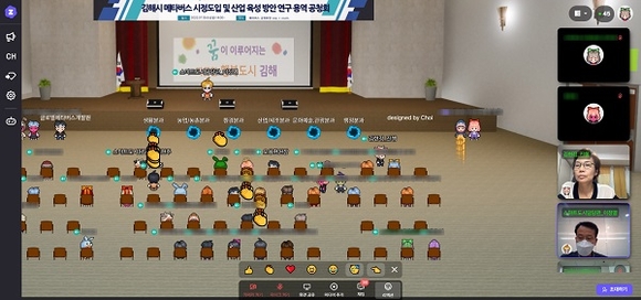 경남 김해시는 지난 13일 온라인 메타버스 공청회장(네이버 Zep 기반)에서 시민과 관계 전문가 등 50여 명이 참석한 가운데 '메타버스 시정도입' 공청회를 가졌다.
