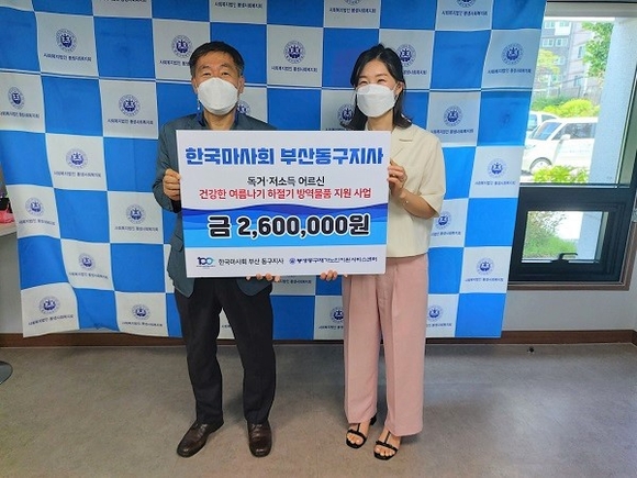 한국마사회 부산동구지사는 최근 봉생동구재가노인지원서비스센터에 '취약어르신 건강한 여름나기 위한 방역물품 지원사업' 후원금으로 260만원을 전달했다.