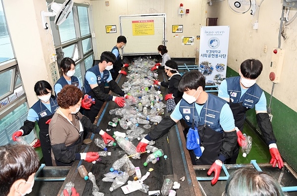 국립부경대학교 PKNU사회공헌봉사단 학생들은 18일 오후 부산 수영클린센터에서 재활용품 및 투명페트병 선별 봉사활동을 펼쳤다.