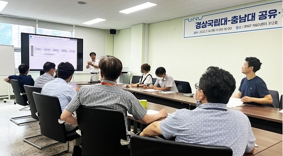 지난 14일 경상국립대 산학협력관 312호 회의실에서 경상국립대학교와 충남대학교 산학연협력 선도대학 육성사업단은 ‘경상국립대-충남대 공유·협업 성과교류회’를 개최했다. (사진=경상국립대 제공)