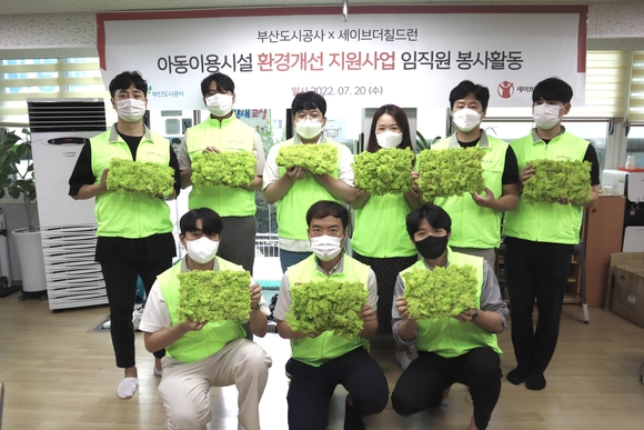 이번 행사는 공사와 세이브더칠드런 부산 남부지역본부가 함께하는 사회공헌활동으로, 아동이용시설 내 공기정화식물인 스칸디아모스를 활용한 플랜트월 설치를 통해 공기 중 유해물질로부터 아동들을 보호하고 아동의 미래 생존권을 보장한다는 취지로 진행됐다.