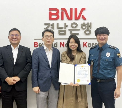 BNK경남은행은 봉암동지점에 근무 중인 행원이 보이스피싱을 예방한 공로로 마산동부경찰서로부터 ‘감사장’을 받았다고 22일 밝혔다.