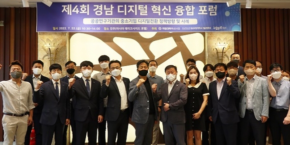 ‘공공연구기관의 중소기업 디지털전환 지원 사례’라는 주제로 열린 이날 포럼은 중소기업의 디지털전환을 위한 공공연구기관의 사례 및 정책 방향을 살펴보는 자리였다. 특히 이번 포럼에는 경상국립대 MOT 사업 참여기관과 협력기관 등이 참석해 성황을 이뤘다.