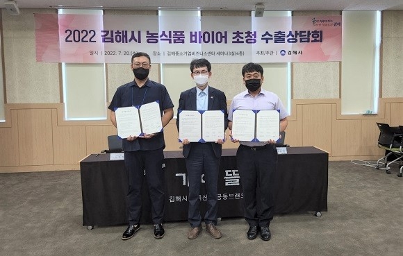 경남 김해시는 지난 20일 김해중소기업비즈니스센터에서 우수 농식품 수출 활성화를 위한 해외바이어 초청 수출상담회를 가졌다.