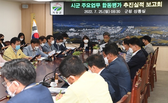 경남 거창군은 25일 군청 상황실에서 김태희 부군수 주재로 부서장 20여명이 참석한 가운데 시군 주요업무 합동평가 추진상황 점검 보고회를 가졌다.