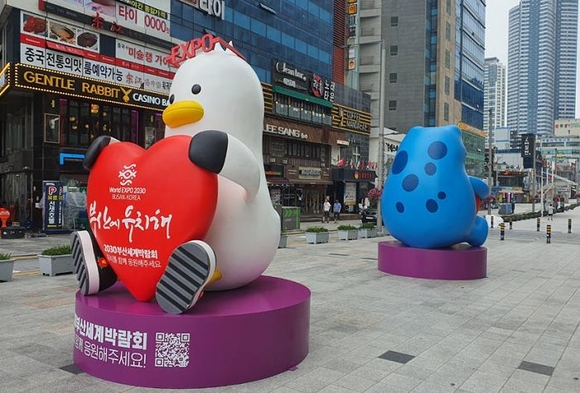 부산 해운대 구남로에 2030부산엑스포 유치 응원 포토존이 마련됐다.