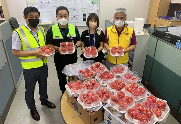 이번 행사는 김해국제공항 국제선 활성화가 진행되는 가운데 무더위에 지친 현장 근무자들의 건강한 여름나기를 위해 마련됐다. 고객접점에서 근무하는 자회사 직원들에게 감사의 마음을 담은 수박도시락을 전달했다.