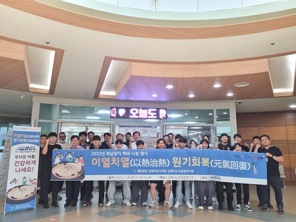 부산-김해경전철은 복날을 맞아 부산 사상구 장애인복지관에 지난 14일 초복맞이 삼계탕 후원(100세트)에 이어 26일 김해시 구산동 노인복지관에서 중복맞이 삼계탕(450인분)을 후원했다.
