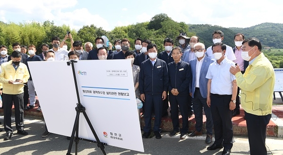 이날 현장에서 구 군수는 도의회 강용범 부의장에게 황강 광역취수장 건립에 대한 군의 입장을 담은 건의문을 직접 전달했다.