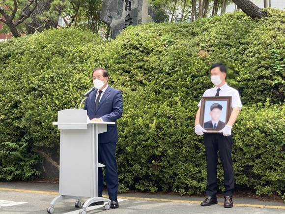 부산시교육청은 합격 번복으로 극단적 선택을 한 공시생 A군의 사망 1주기를 맞아 27일 시교육청 정문 앞에서 추모식을 열었다.