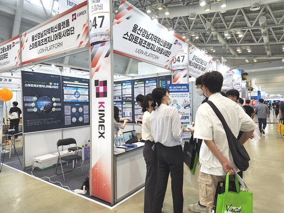 지난 26일부터 오는 29일까지 창원컨벤션센터(CECO)에서 개최되는 ‘제14회 한국국제기계박람회’에 창원대학교 울산경남지역혁신플랫폼 스마트제조엔지니어링사업단이 참가했다. (사진=창원대 제공)