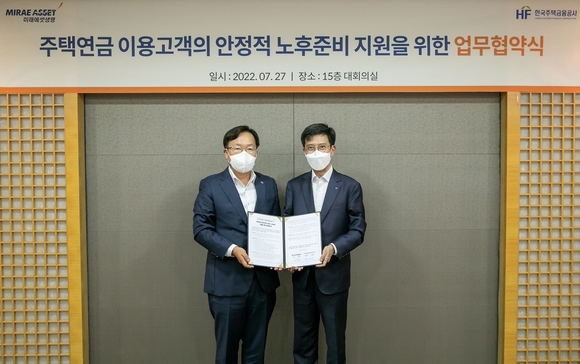 한국주택금융공사(HF)는 미래에셋생명보험과 '주택연금 이용고객의 안정적 노후준비 지원을 위한 업무협약'을 체결했다고 28일 밝혔다.