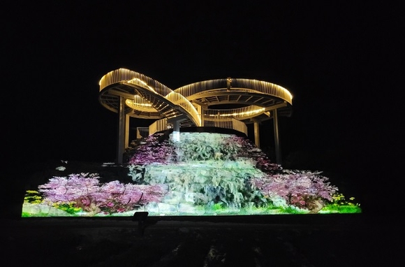 경남 거창군은 감악산 항노화웰니스체험장 전망대 사면을 활용한 미디어파사드를 이달부터 운영한다고 1일 밝혔다.