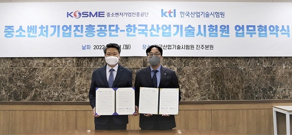 국내 유일 공공 종합시험인증기관인 한국산업기술시험원(이하 KTL)은 중소벤처기업진흥공단과 국내 중소·벤처기업의 기술경쟁력 강화 및 수출활성화 지원을 위해 1일 업무협약을 체결했다고 밝혔다.