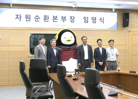 한국남동발전은 2일 진주 본사에서 펭수를 자원순환본부장으로 임명하고, 석탄재 재활용제품 마케팅을 위한 홍보 활동을 펼쳤다고 밝혔다.