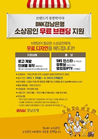 BNK경남은행은 지역 소상공인들을 대상으로 ‘소상공인 무료 브랜딩 지원 서비스’를 이용할 업체를 접수 중이라고 3일 밝혔다.