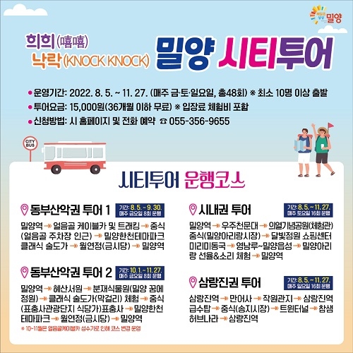 경남 밀양시는 오는 5일부터 하반기 시티투어 운영을 시작한다고 3일 밝혔다.