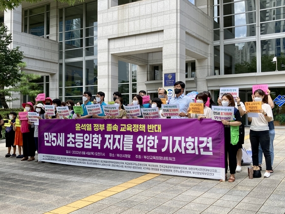 '만 5세 초등학교 입학' 학제개편안 추진에 대한 학부모 반발이 커지면서 교육부가 뒤늦게 공론화에 나섰지만, 부산의 시민단체와 학부모들은 "더이상의 공론화는 필요없다. 즉각 철회하라"며 반발하고 나섰다.