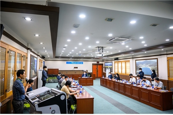 경남문화예술진흥원(이하 진흥원) 경남콘텐츠기업지원센터에서는 ‘2022년 지역특화 콘텐츠개발 지원사업’ 지원 과제로 선정된 '이순신순국공원 360˚ 풀돔 몰입형 미디어아트 콘텐츠 개발 노량의 물빛'의 사업설명 및 콘티 보고회를 지난 3일 남해군청 대회의실에서 진행했다.