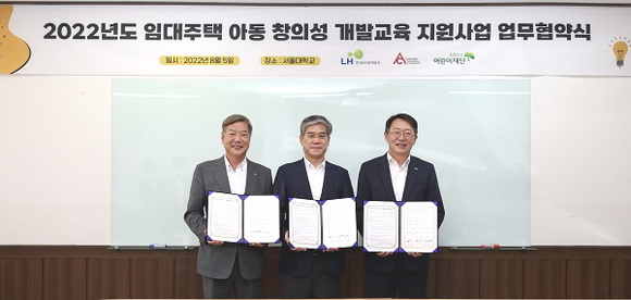 한편, LH는 5일 초록우산 어린이재단에 후원금 1억 6000여 만 원을 전달했다. 후원금은 이번 아동 창의성 개발교육을 실시하는 데 활용되며, 후원금 전달식에는 김현준 LH 사장, 황영기 어린이재단 회장, 임철일 창의성학회장이 참석했다.