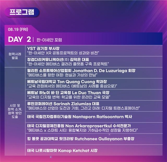 정문섭 진흥원장은 "2022년 한·아세안 XR 공동프로젝트로 9개 과제를 선정해 총 33억원 규모를 지원했으며, 이번 한·아세안 포럼을 통해 차년도 수요를 확인하고, 수요맞춤형 지정과제를 발굴해 지원할 계획"이라고 말했다.