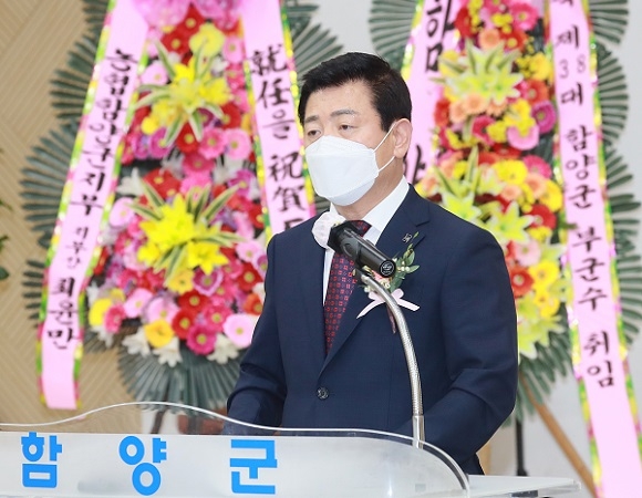 이날 취임식은 가족과 친지, 경남도 및 함양군 직원 등 100여명이 참석한 가운데 국민의례, 약력소개, 취임사, 꽃다발 증정, 기념촬영 등의 순으로 진행됐다.