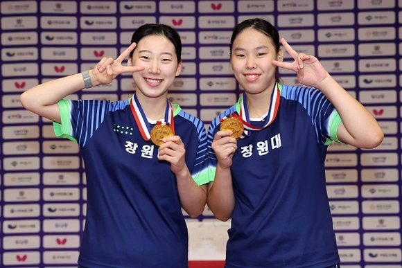 창원대학교 체육학과는 탁구부 노푸름(체육학과 4학년)과 도민지(체육학과 1학년) 선수가 지난달 28일부터 5일까지 충북 제천체육관에서 열린 ‘제38회 대통령기 전국탁구대회’에서 개인복식 우승을 차지하며 금메달을 목에 걸었다고 8일 밝혔다.