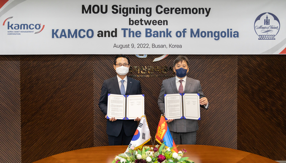 한국자산관리공사(캠코)는 9일 몽골 중앙은행(BOM)과 '부실자산 관리 경험 및 정보 공유 등 업무협력 증진을 위한 양해각서'를 체결했다고 밝혔다.