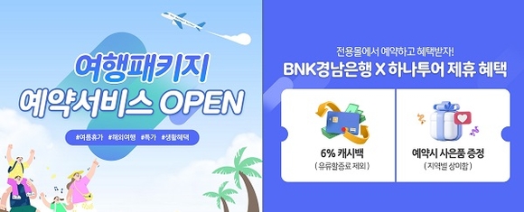 BNK경남은행은 하나투어와 제휴해 ‘여행 예약 서비스’를 시행 중이라고 10일 밝혔다.