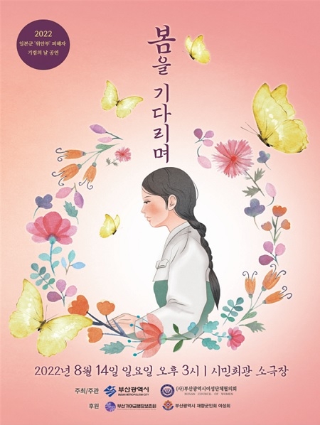 부산시와 (사)부산시여성단체협의회는 오는 14일 오후 3시 부산시민회관 소극장에서 2022년 일본군 '위안부' 피해자 기림의 날 기념행사 '봄을 기다리며'를 연다고 11일 밝혔다.