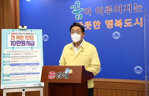 경남 김해시가 코로나19로 힘든 전 시민을 위로하기 위해 추석 전 1인당 10만원씩 지급하기로 했다.