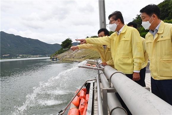 박형준 부산시장이 11일 오전 시의 취수원인 매리취수장과 덕산정수장을 방문해 낙동강 유역의 녹조 대응 상황을 비롯한 정수처리공정 전반을 점검했다.