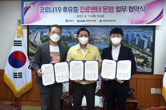 경남 김해시는 11일 시청에서 김해시의사회, 김해시한의사회와 코로나19로 후유증을 겪고 있는 시민들을 관리하기 위한 업무협약을 체결했다.