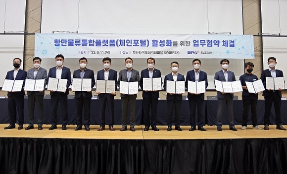 부산항만공사(BPA)는 11일 부산항국제여객터미널에서 부산항 컨테이너 물류 관련 업·단체와 '항만물류통합플랫폼(체인포털) 활성화를 위한 업무협약'을 체결했다.