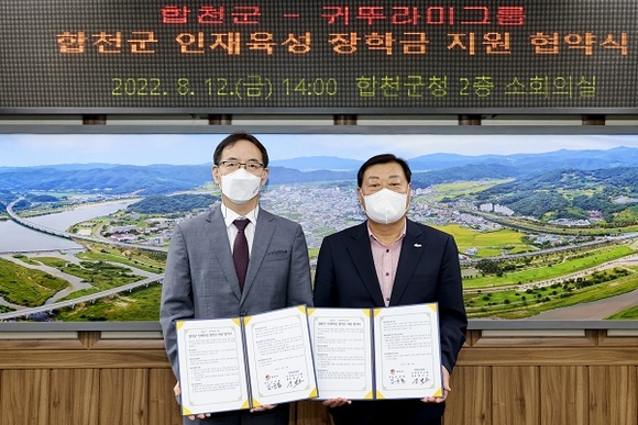 경남 합천군은 12일 군청 2층 소회의실에서 귀뚜라미그룹과 지역 인재육성을 위한 장학금을 지원하는 내용의 협약을 체결했다.