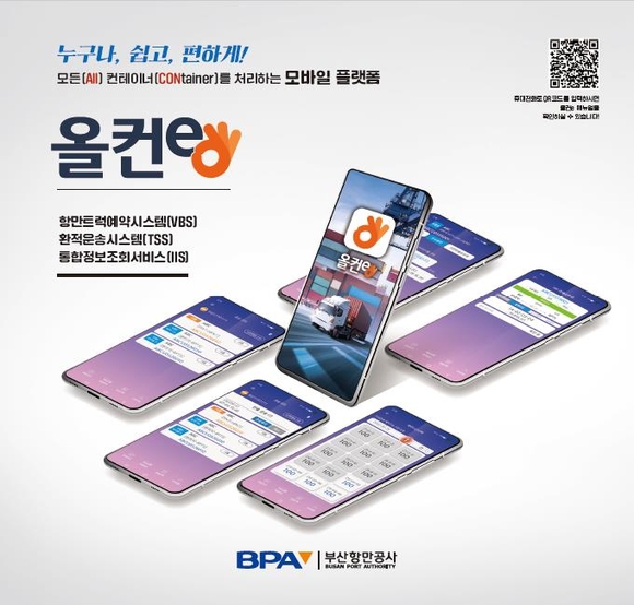 부산항만공사(BPA)는 부산항 운영 효율 및 생산성 향상을 위해 구축한 부산항 항만물류통합플랫폼의 모바일 앱 '올컨e(AllCON-e)'를 스토어에서 다운받을 수 있고 16일 밝혔다.